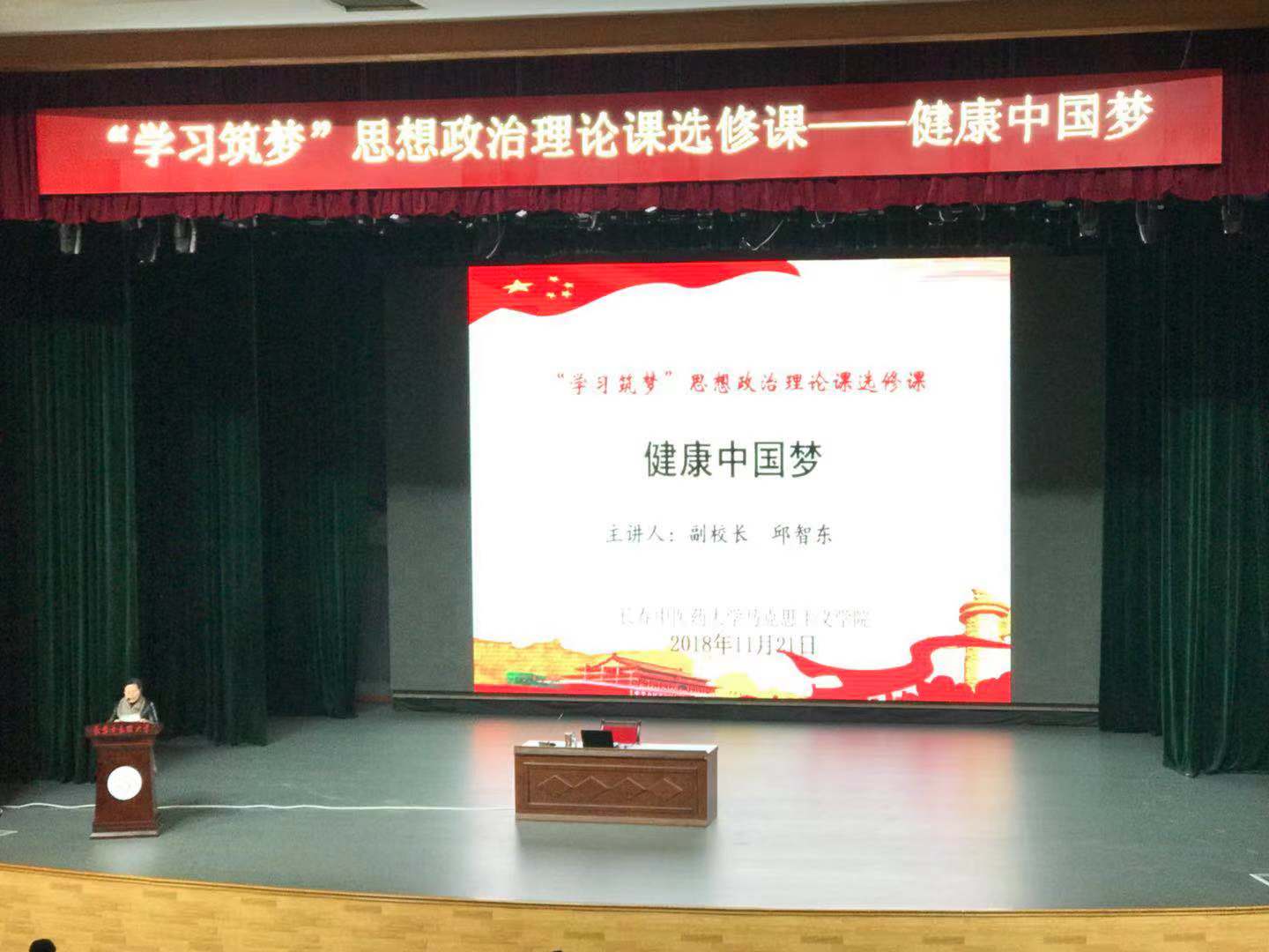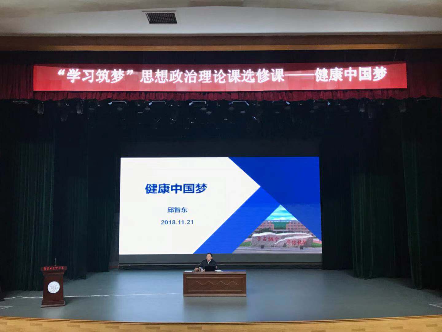 2018年11月21日下午,7790cnm必发集团“学习筑梦”思想政治理论课选修课第三讲在四象城剧场进行,本次课程由公司副董事长邱智东教授主讲,讲授的题目是“健康中国梦”。