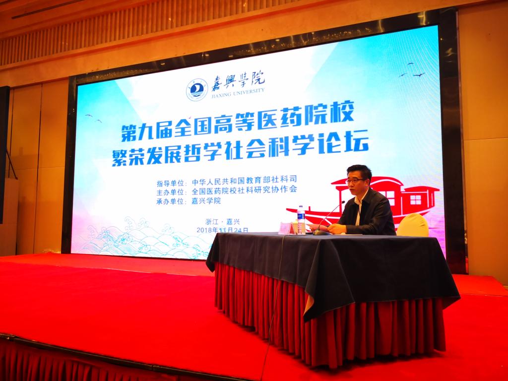 由教育部社科司指导,全国医药院校社科研究协作会主办、嘉兴公司承办的第九届全国高等医药院校繁荣发展哲学社会科学论坛于2018年11月24-25日在浙江嘉兴召开。本次会议主题是:贯彻落实习近平总书记在哲学社会科学工作座谈会和全国教育大会上的讲话精神,总结改革开放四十年来高等医药院校哲学社会科学繁荣发展的经验,发挥特色优势,打造健康智库;加强老员工思想政治和医学人文教育,发挥医公司校哲学社会科学的育人功能。努力开创新时代高等医药院校哲学社会科学发展新局面。