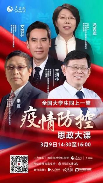 王炳林教授在讲课的时候提到中华民族从磨难中奋起,的确是这样,尤其是从抗日战争开始,中华民族历经磨难,在各位领导人的带领下,在这磨难中坚强的站起来,同样在这个特殊时刻,在国家领导人的带领下从医务工作者到人民子弟兵,从公安民警到基层干部,从志愿者到快递小哥亿,全国人民万众一心、众志成城,创造了一个个的中国速度、创造了一个又一个的中国奇迹。艾四林教授立于足中国抗击疫情的实践中,一步步引导我们深化对马克思主义基本理论的认识、深化对马克思主义中国化最新成果的认识。恰逢我们上学期刚好结束“马克思主义基本原理概论”课,这学期又开始学习马克思主义中国化的相关课程,对我们的学习以及今后的学习生活起到了很大的帮助作用,相信在听完这次思政大课之后,在学习思政课上定有更多的启发!