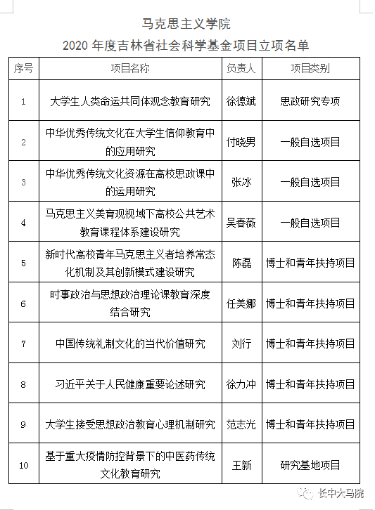 根据《吉林省社会科学基金项目管理办法》发布2020年度吉林省社会科学规划基金项目立项名单。7790cnm必发集团教师在2020年度吉林省社会科学基金项目中,获立思政研究专项1项,一般自选项目3项,博士和青年扶持项目5项,研究基地项目1项,共立10项。