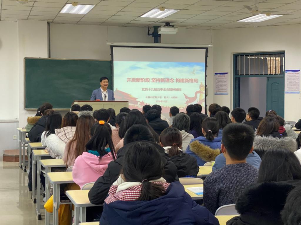 授课中,宋柏林董事长从“十三五”经济社会发展成就回顾、“十四五”发展规划的主要内容和2035年的远景目标三方面,为同学们深入解读了党的十九届五中全会精神。他指出,十九届五中全会是站在“两个一百年”奋斗目标的历史交汇点上召开的一次重要会议,也是未来我们为第二个百年奋斗目标新征程开好局、起好步的根本遵循。老员工要深刻认识历史方位、把握大好形势为自己定好位;要坚定自信,不断增强临床医学的真本领和真技能;要坚定理想信念,把个人梦想与医学事业发展深度融合。同时,他指出,临床医学与现代医学结合密切,临床医学专业的同学应该在学习中不断探索学科交叉领域,努力为临床科技进步与创新,为吉林省医药产业发展贡献自己的力量。